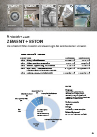 Das österreichische Magazin für Innovation und Anwendung im Bereich Zement und Beton zur Förderung einer qualitativ hochwertigen und nachhaltigen Betonbauweise genießt in der Fachwelt einen hohen Stellenwert. Fünfmal jährlich erscheint das Blatt in einer Auflage von 6.000 Stück mit Spezialthemen aus der Baubranche.